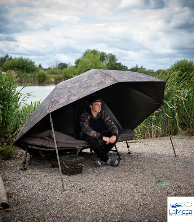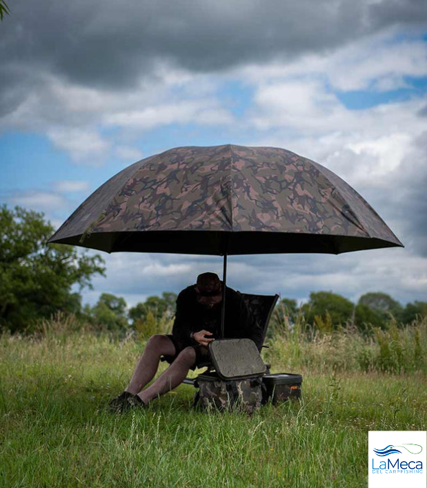 Brolly de la marca Fox, modelo en color camo de 60'', especial para la pesca de carpfishing.