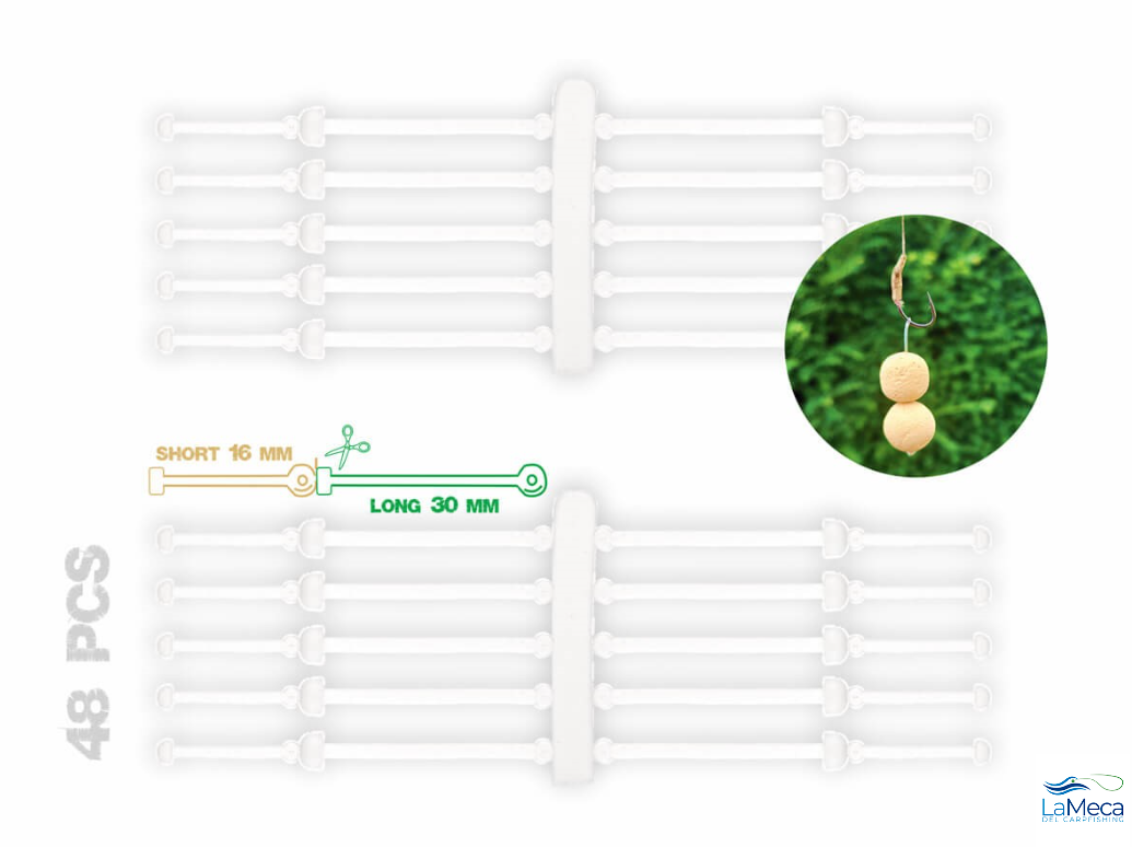 Este soporte de silicona para anzuelo permite montar facilmente los boilies o pellets directamente debajo del anzuelo sin necesidad de usar el tradicional aparejo de pelos.